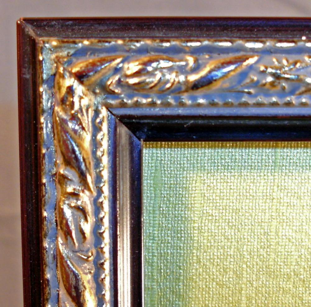 An 18th C. Continental Grand Tour hand-painted bisque medallion, featuring two frolicking putti within a gold leaf fillet, custom shadow-box framed w/gilt tracery, lined with yellow silk moire. Probably Italian. c. 1790