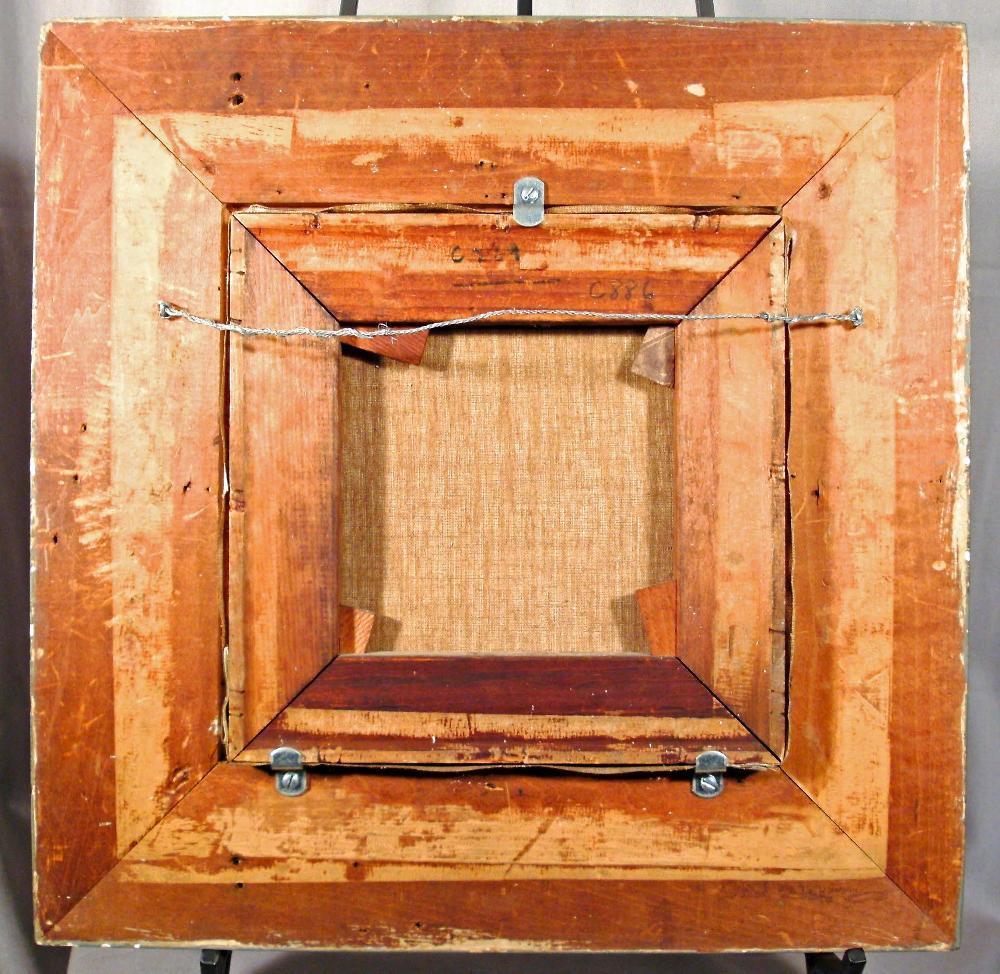 A pair of wonderful Grand Tour paintings b y Canedo, both signed by the artist, depicting classic Italian landscapes, including a Roman Period bridge & tower, one with fisherman, in original grey painted frames. Canvas dimensions: 9" X 9".