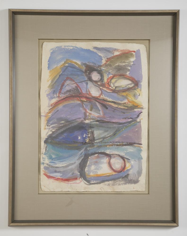 A Modernist Mid 20th Century expressionist abstract gouache after Abraham Van Velde, on heavy paper, bearing signature "AVV" lower right and a monogram associated with Bram Van Velde ( b. 1891 - d. 1995 ) The Netherlands. Newly custom matted & framed. Dimensions: 45" H x 35" W.