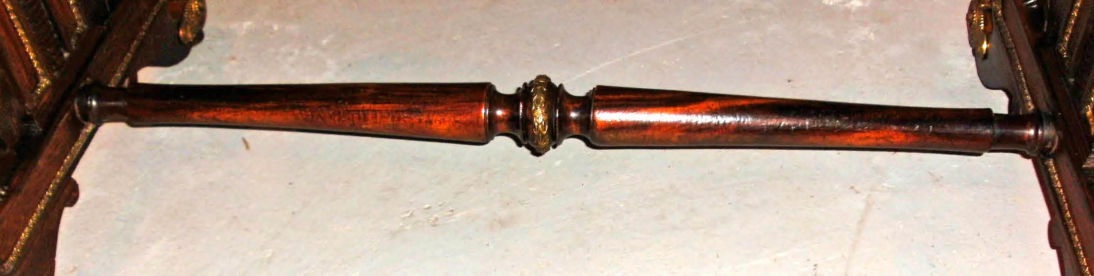An English early Regency 2 drawer rosewood and mahogany inlay sofa table or desk w/hinged drop leaf extenders, the oblong top mounted on matching side supports, connected by a turned, tapering stretcher, all on four paw feet; original gilt brass hardware. Designed by Decimus Burton for the townhouse of the Duke of Rutland, Arlington Street, London. (See Provenance, attached paperwork England, c. 1790--1810. Dimensions: 28 1/4" H x 43" W x 27 1/2" D.